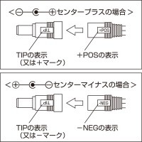 多くの機器はセンタープラスですが、プラグの取り付け方向を変えればセンターマイナスの機器にも対応できます。