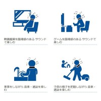 上向きのスピーカーは、周囲への音漏れを最低限に抑えます。ヘッドホンとは違い、周囲を把握しながらテレビの音声や音楽を楽しめます。