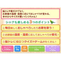 毎日、おしゃべりやお歌で楽しく過ごせたり、脳トレやゲームで毎日が充実してくれます。お部屋の温度・湿度に応じておしゃべりやほっぺの色が変化! 主な特長 ●頭をなでるとおしゃべり1100通り以上、童謡・唱歌10曲を歌います ●お部屋の温度・湿度に応じて約50種類のおしゃべりで注意喚起してくれます ●脳トレ9種類・約900通りの出題数で毎日脳のトレーニングができます ●見た目も本物そっくり!環境で本物を飼えない方にも ■毎日楽しくおしゃべりしたりお歌を歌います 〇ミミクリーおしゃべりで質問に答えるとそのワードを録音して返してくれます。 〇100通り以上のゆかいなひとりごとを話してくれます。 〇懐かしの童謡・唱歌を10曲ランダムで歌います。 〇カッコウの鳴き声や波の音など色々な癒しのものまねをします。 ■お部屋の温度・湿度に応じておしゃべりが変化します 〇温度が高すぎる時・・・キケンキケン!暑すぎる〜!汗かいてない?など 〇温度が低すぎる時・・・キケンキケン!寒すぎる〜!おらこんな部屋いやだー!など 〇湿度が高すぎる時・・・じめじめ注意!さわやかな風を感じたいな〜!など 〇湿度が低すぎる時・・・カサカサ注意!空気が乾燥しているね!など 〇適温・適湿の時・・・はぁ〜!ゴクラク、ゴクラク!インコちゃん、絶好調! ■脳トレに役立つクイズやゲームが9種類、出題数約900通り! 仕様 ■サイズ:W50xH103xD157mm ■重量:約180g(電池含む) ■電源:単4アルカリ電池2本(別売) ■材質:PVC、PC、ABS ■対象年齢:6歳以上 ■STマーク取得 タグ:TAKARA TOMY オムニボット(Omnibot) コミュニケーショントイ 音声認識 いんこちゃん ぬいぐるみ ヌイグルミ おしゃべりロボット よびかけアクション スーパーリアル リアルな?インコ 癒し ヒーリングパートナー ペット飼えない 一人暮らし マンション プレゼント ギフト 在宅勤務 在宅ワーク 在宅応援 ステイホーム ステイホーム おうち時間 おうち遊び 自宅遊び ストレス緩和 コミュニケーションロボット 父の日 母の日 敬老の日 シニアプレゼント 幼児玩具 おもちゃ 保育園 幼稚園 幼児おもちゃ 動物おもちゃ 動物玩具 男の子 女の子 セキセイインコ バーチャルペット 高齢者 音声認識 クリスマス クリスマスプレゼント 音声認識人形 小鳥 お話し人形 おしゃべりロボット しゃべる人形 誕生日 脳トレ 御喋り 天才インコ 天才いんこ 認知症 予防