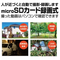 侵入者やストーカーを感知するとその場でmicroSDカードに自動録画します。