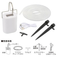 ■付属品:充電用USBケーブル(長さ約50cm)、シリコンチューブ(長さ約2m、内径約5mm、外径約7mm)、Tバルブ、スプリンクラー×2