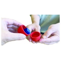 ●カップを開けて形合わせ遊び。同じ色と形のピースを見つけよう!