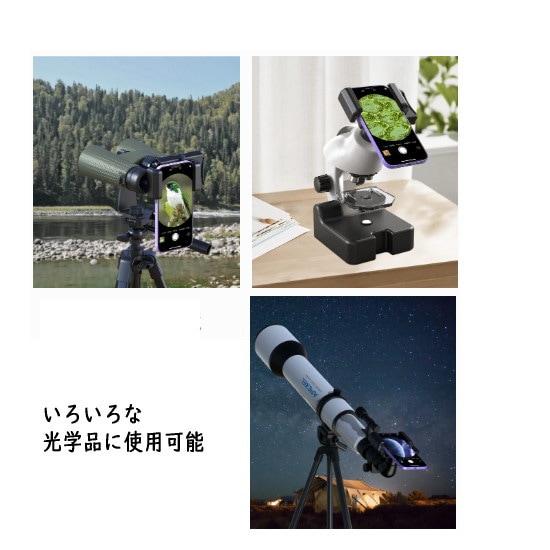双眼鏡や望遠鏡などをはじめ多くの光学機器にスマートフォンを取り付けての撮影が可能なアダプターです。